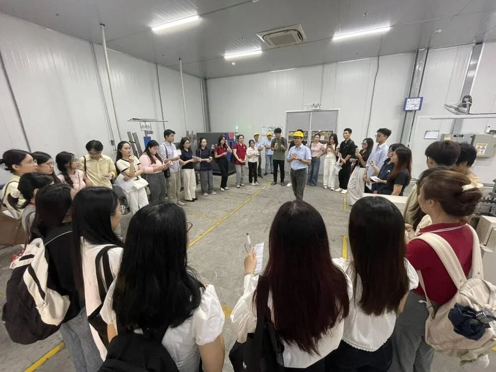 With the coordination and support of ISC’s leadership, students were divided into large groups that rotated through key areas including the Office, Production Workshop, and Materials Warehouse. At each station, ISC’s technical staff directly introduced the operations, answered questions, and illustrated practical working procedures.