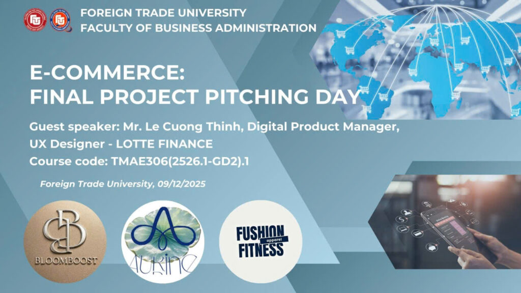 On the afternoon of 09 December 2025 at Foreign Trade University (FTU), students of the K62 High-Quality Program of the Faculty of Business Administration delivered their e-commerce project presentations and engaged in a networking session with Mr. Le Cuong Thinh—Digital Product Manager at LOTTE Finance and an FTU alumnus (2003–2007).